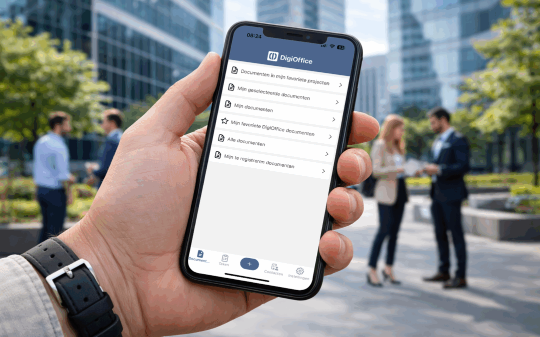 Onlangs is de nieuwe DigiOffice App gelanceerd in de Google Play Store en Apple App Store. Deze mobiele app voor tablet of smartphone integreert contacten, documenten en taken in één overzichtelijke omgeving. Of je nu onderweg bent, bij een klant zit of thuiswerkt: met de DigiOffice App heb je altijd toegang tot je documenten, dossiers en workflows. Zo werk je flexibel, snel en veilig, waar je ook bent.